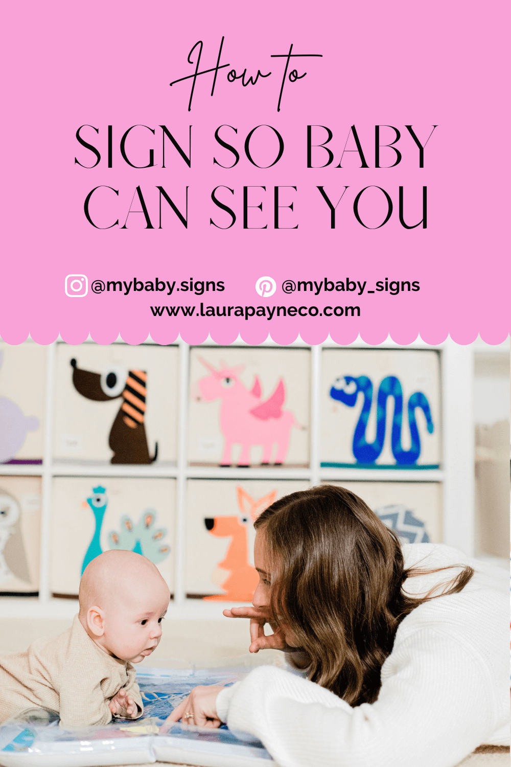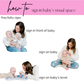 Sign on baby: When you’re behind your baby (like when reading a book), you can actually put the sign on your baby’s body if it would otherwise be behind them and out of sight.